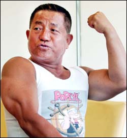 78세 나이에도 탄탄한 근육질 몸매를 유지 중인 '뽀빠이' 이상용.